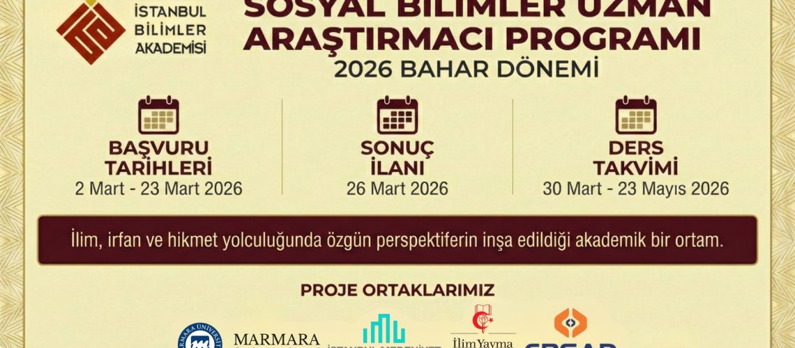 Sosyal Bilimler Uzman Araştırmacı Programı (2026 Bahar Dönemi) İstanbul Bilimler Akademisi Vakfı (İBA) olarak, ilim, irfan ve hikmet yolculuğunda akademik derinlik kazanmak isteyen genç... Daha Fazlası